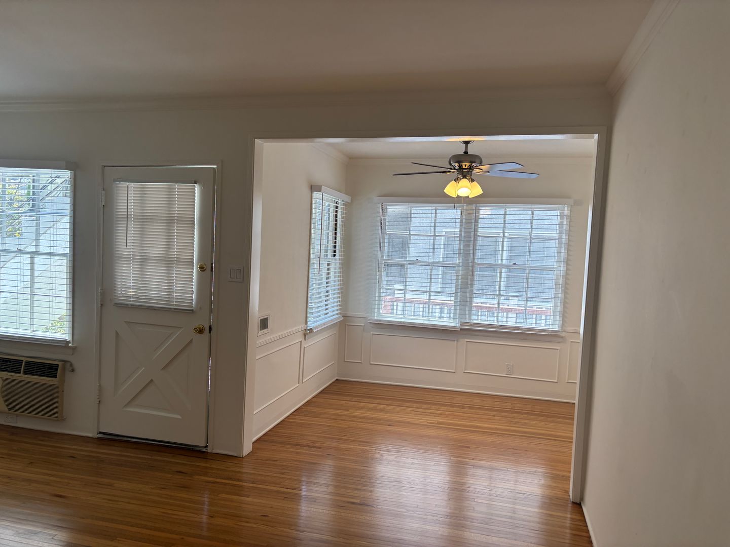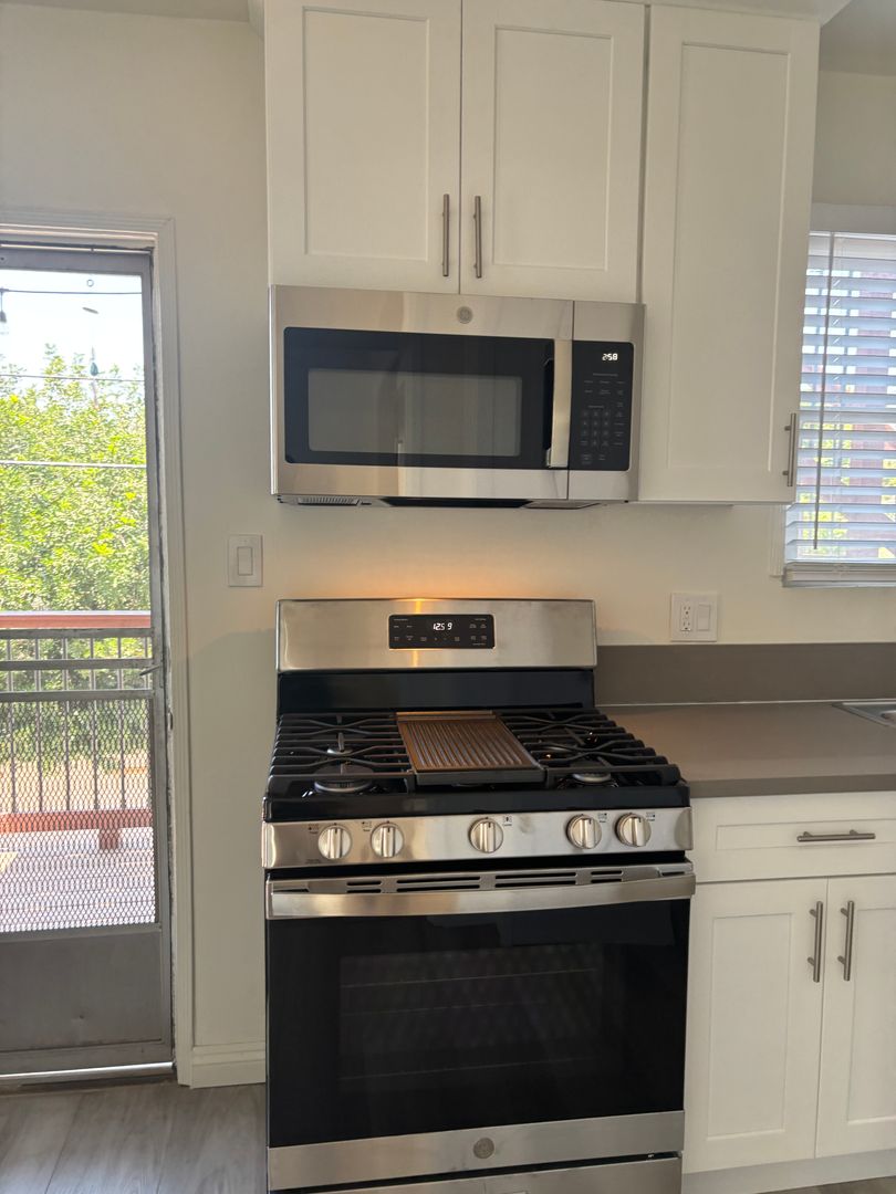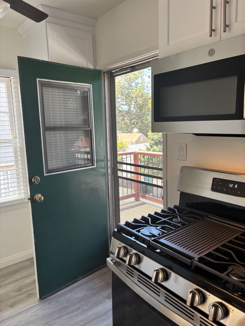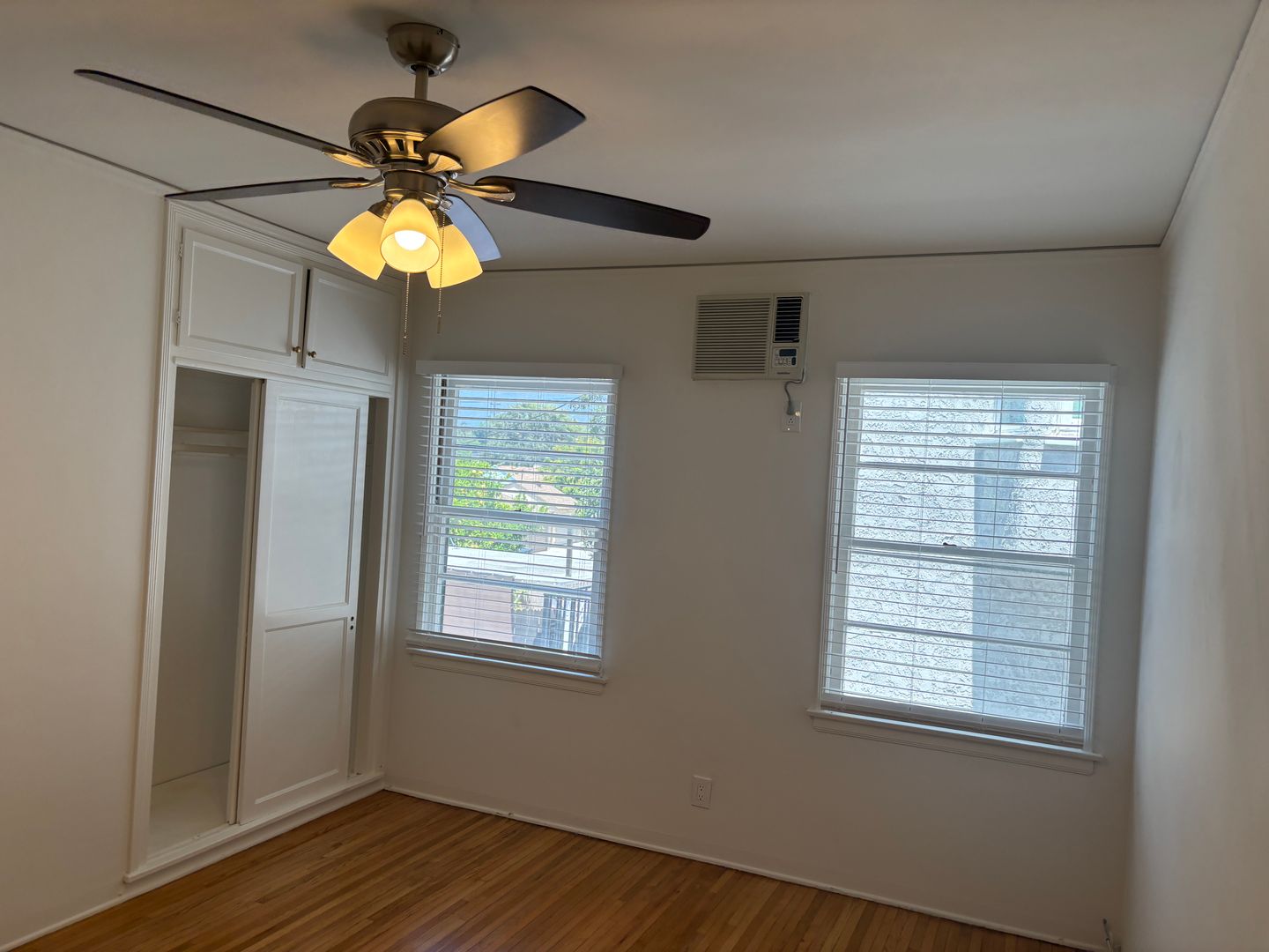Welcome to your newly renovated 2-bedroom, 1-bathroom apartment located in the vibrant city of Glendale, CA. This first-floor unit boasts a fresh coat of paint, refinished hardwood floors, and a detached garage for your convenience. The kitchen is a chef's dream, featuring new cabinets, countertops, and a brand new 30" stainless steel gas stove. A matching stainless steel microwave is also included, adding a sleek, modern touch to the space. The apartment is equipped with two window AC units to keep you cool during those warm California days. For your laundry needs, there's a stackable washer and dryer hook-up available. Each room is fitted with ceiling fans for added comfort. Experience the perfect blend of comfort and style in this great location.