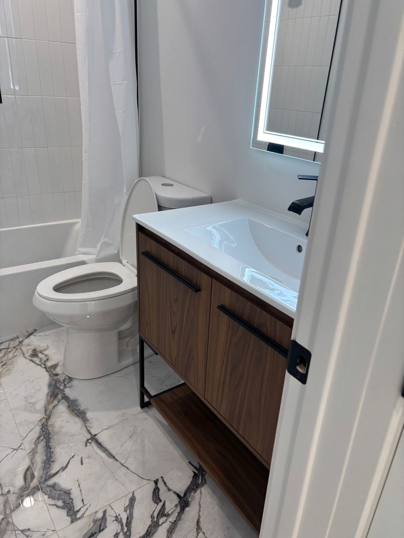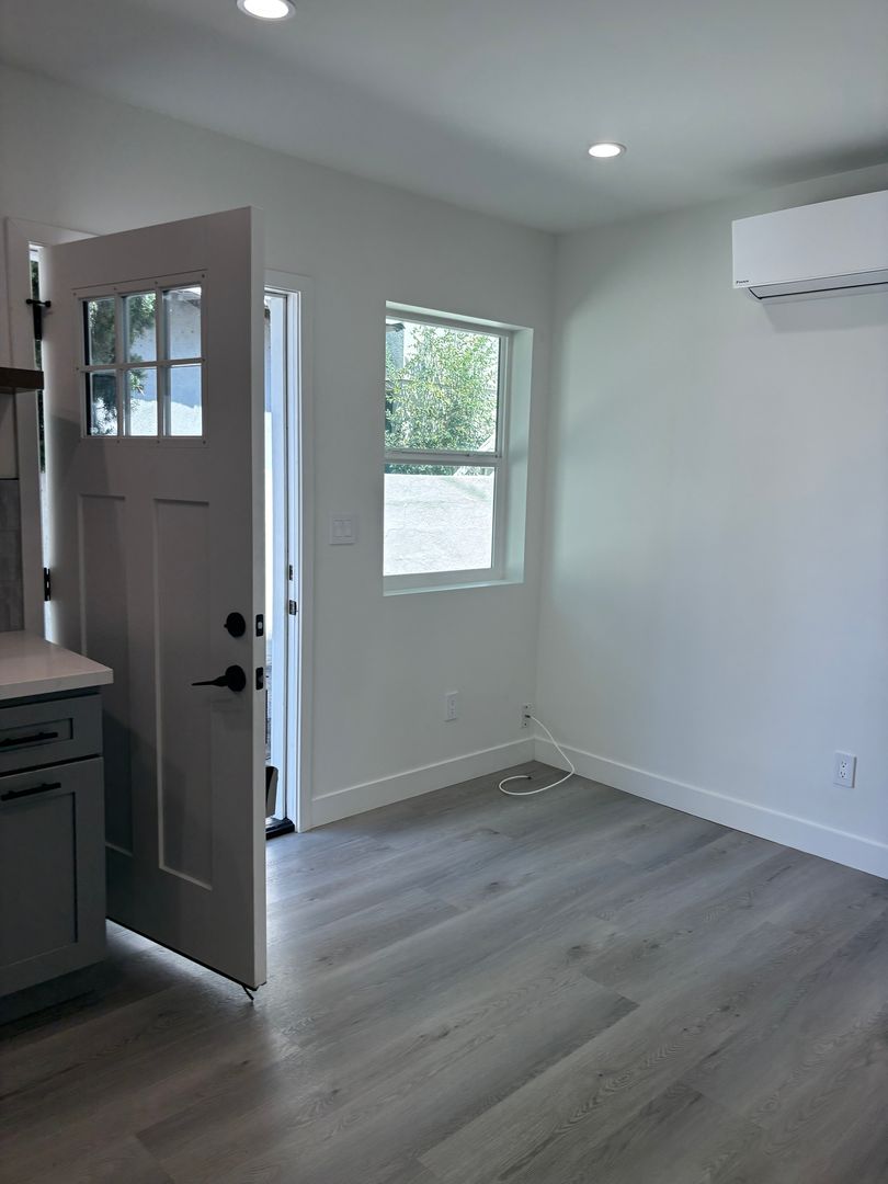This Charming New Construction One-Bedroom Unit in Burbank! Nestled on the first floor, this cute and cozy apartment awaits. The kitchen is fully equipped with stainless-steel appliances including a refrigerator, microwave, and electric stove. You'll love the elegant white shaker cabinets, complemented by white granite countertops and a stainless-steel sink. Custom tile on the kitchen walls adds a modern touch, while recessed lighting throughout and an AC/Heat split system ensure comfort in every season.