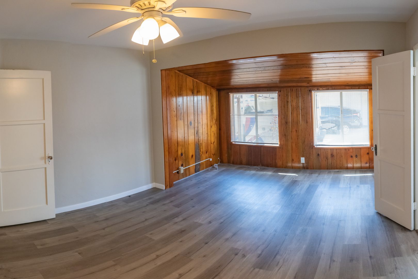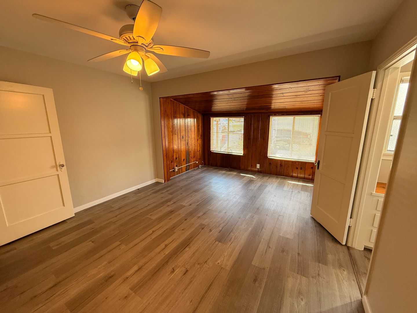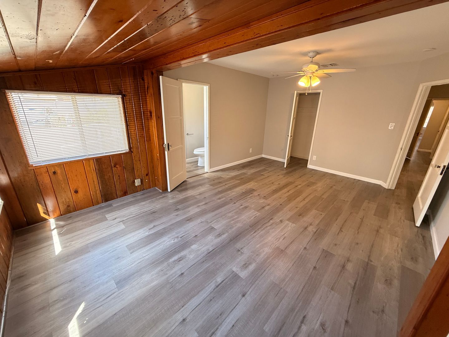 - Three well-sized bedrooms, each offering unique charm - one with warm wood paneling and vaulted wood ceilings.