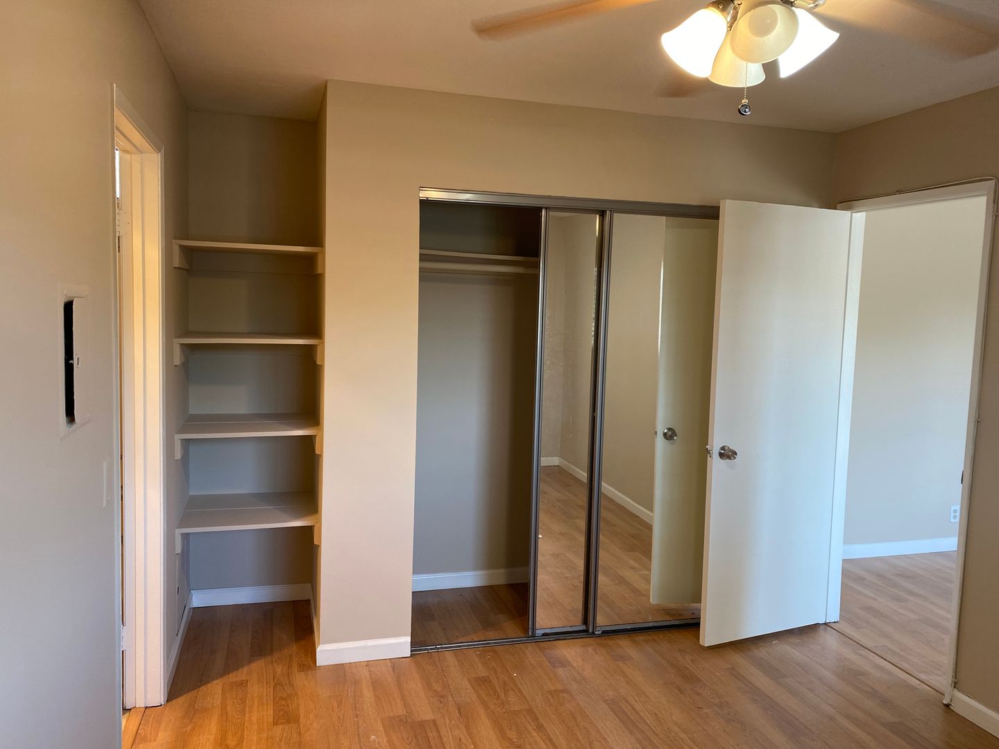 Bright and modern second floor 1 bedroom, 1 bath unit available in charming, newly painted building in prime Burbank Equestrian Center area. Unit comes with laminate floors in living area and bedroom, tile in kitchen and bathroom, stove, vertical blinds, wall AC and heat unit, multiple ceiling fans, shared coin-operated laundry facility, one designated covered parking space, friendly and responsive on-site manager, professionally managed by property management company, owner pays for water and gardener, great central Burbank location near shops, dinning, grocery stores, gas station, L.A River bike trail, Equestrian Center, Disney Studios and other studios. Must see!