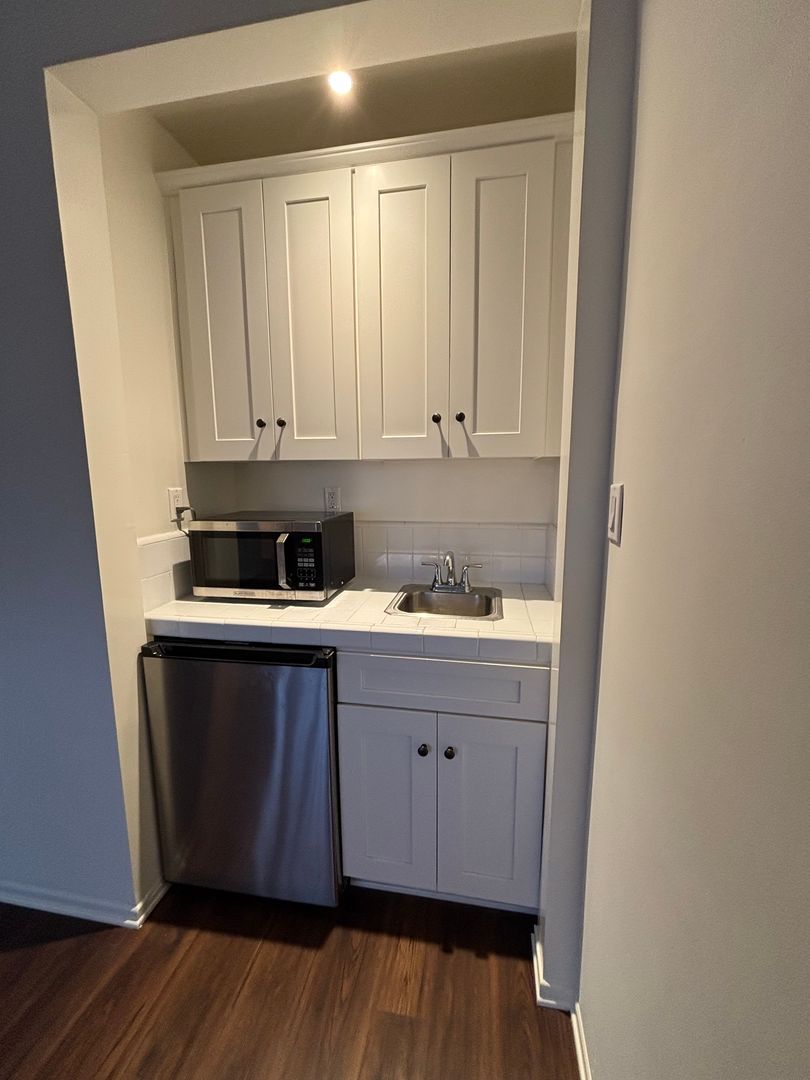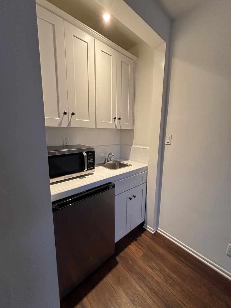 -Cozy kitchenette with a small sink and refrigerator